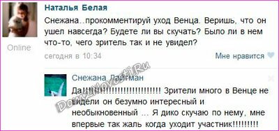 Катя Токарева вслед за бывшим мужем не ушла. Более того, она даже не пошла с другими участниками проводить его до ворот, крикнув, чтобы валил. Хотя еще недавно Катя говорила, что если Венцеслав уйдет, то и она на проекте не останется. А вот другие участники, например, Снежана Камбур, сожалеют об уходе Венчика: